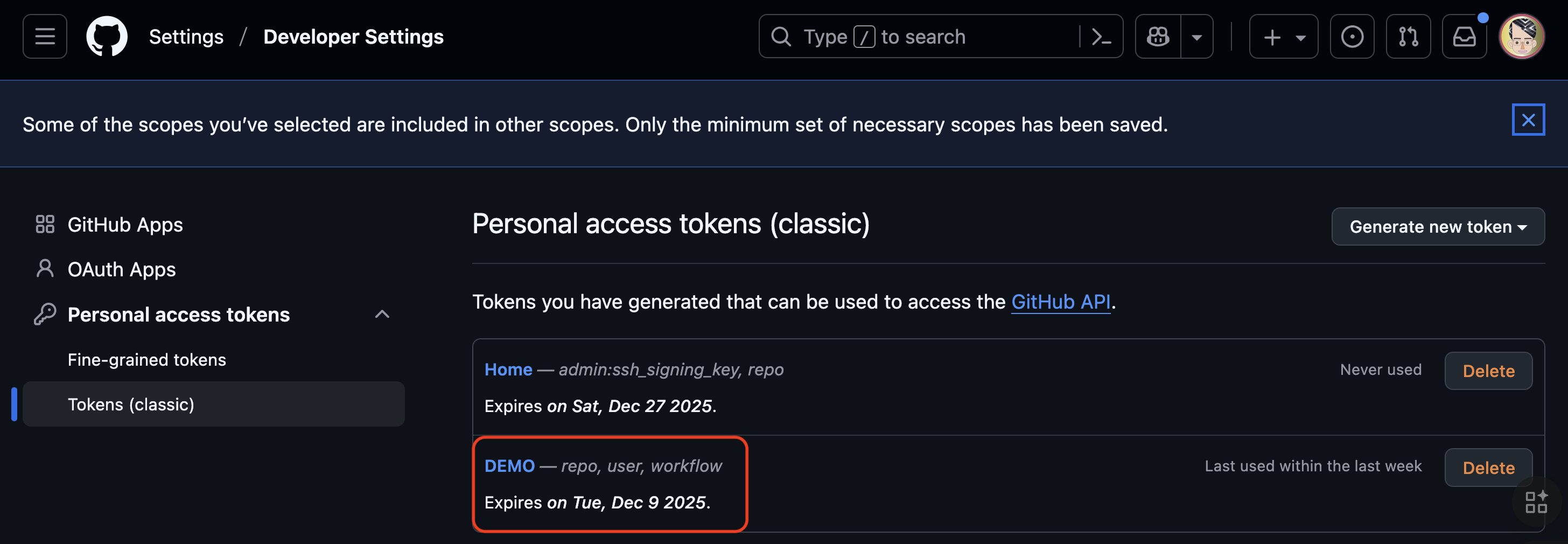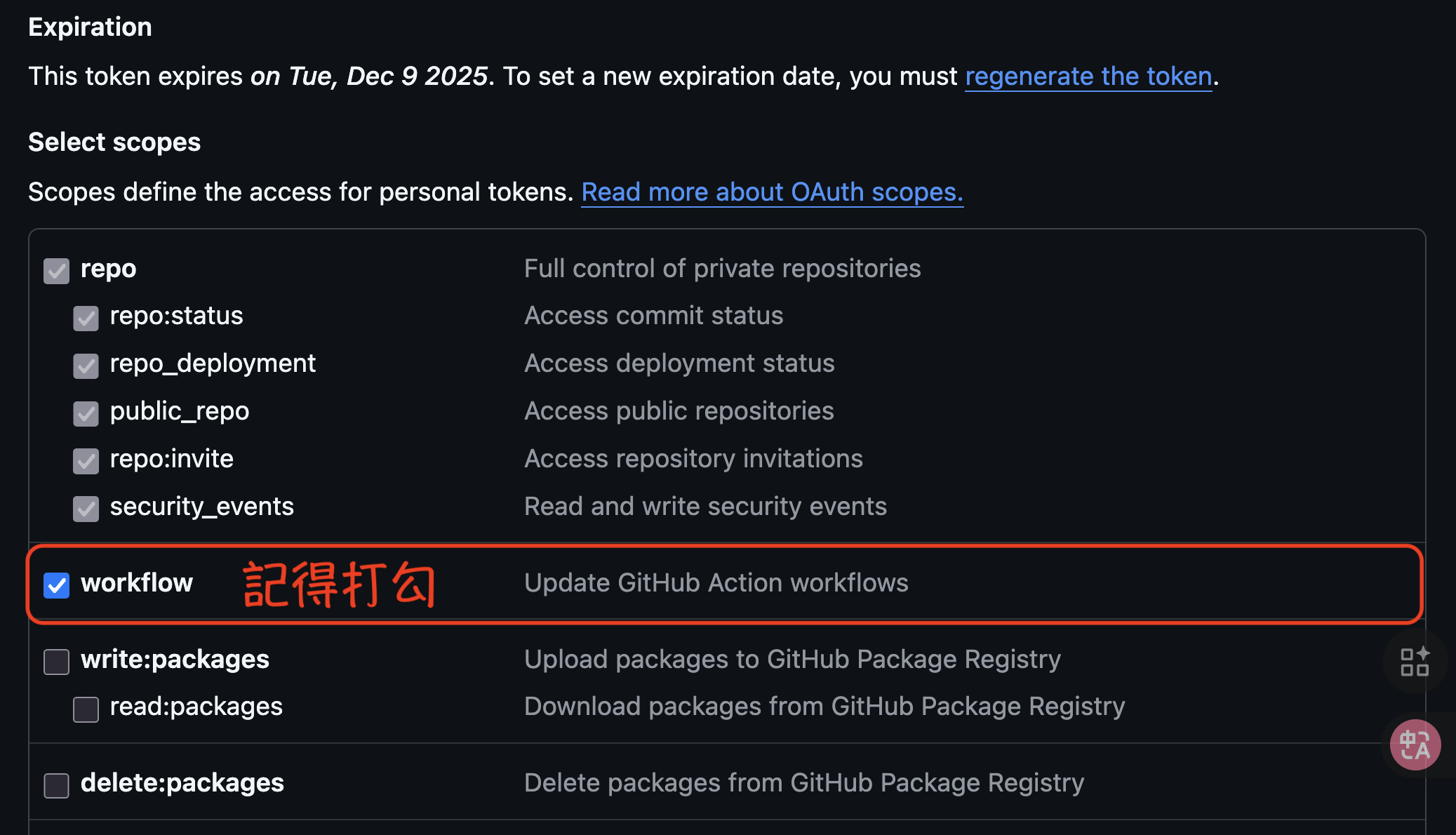 - 因為現在Github都是使用Token登入使用的,所以要先把該workflows的功能先