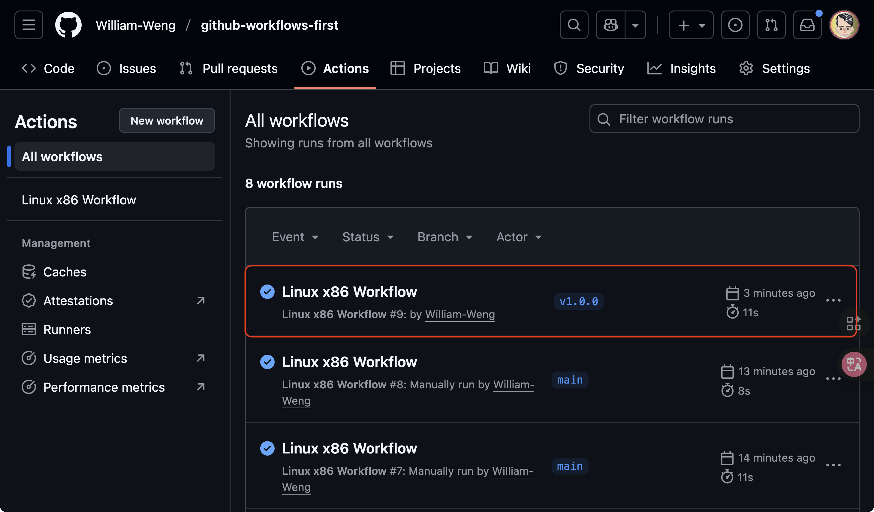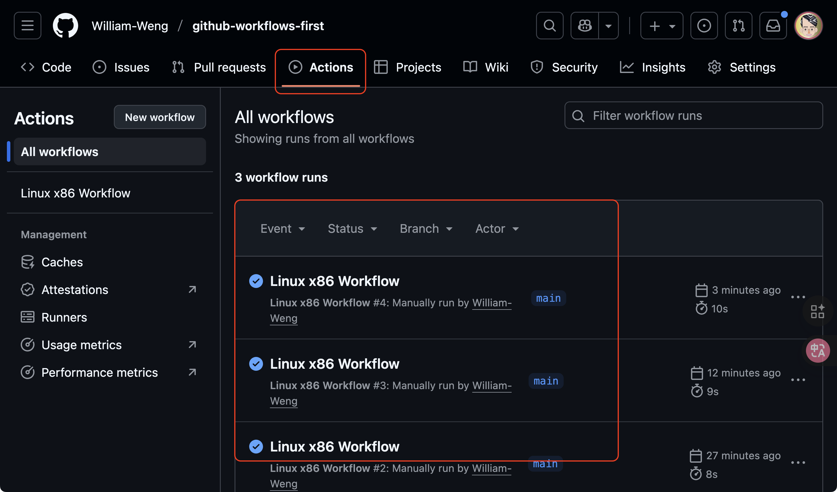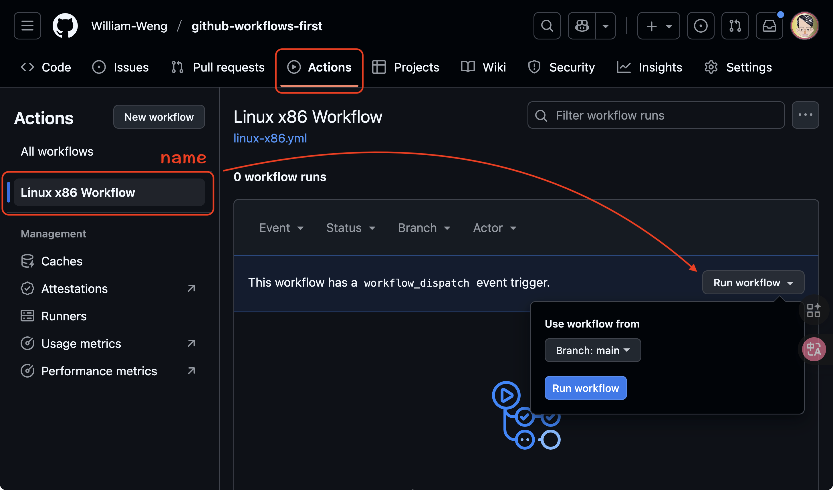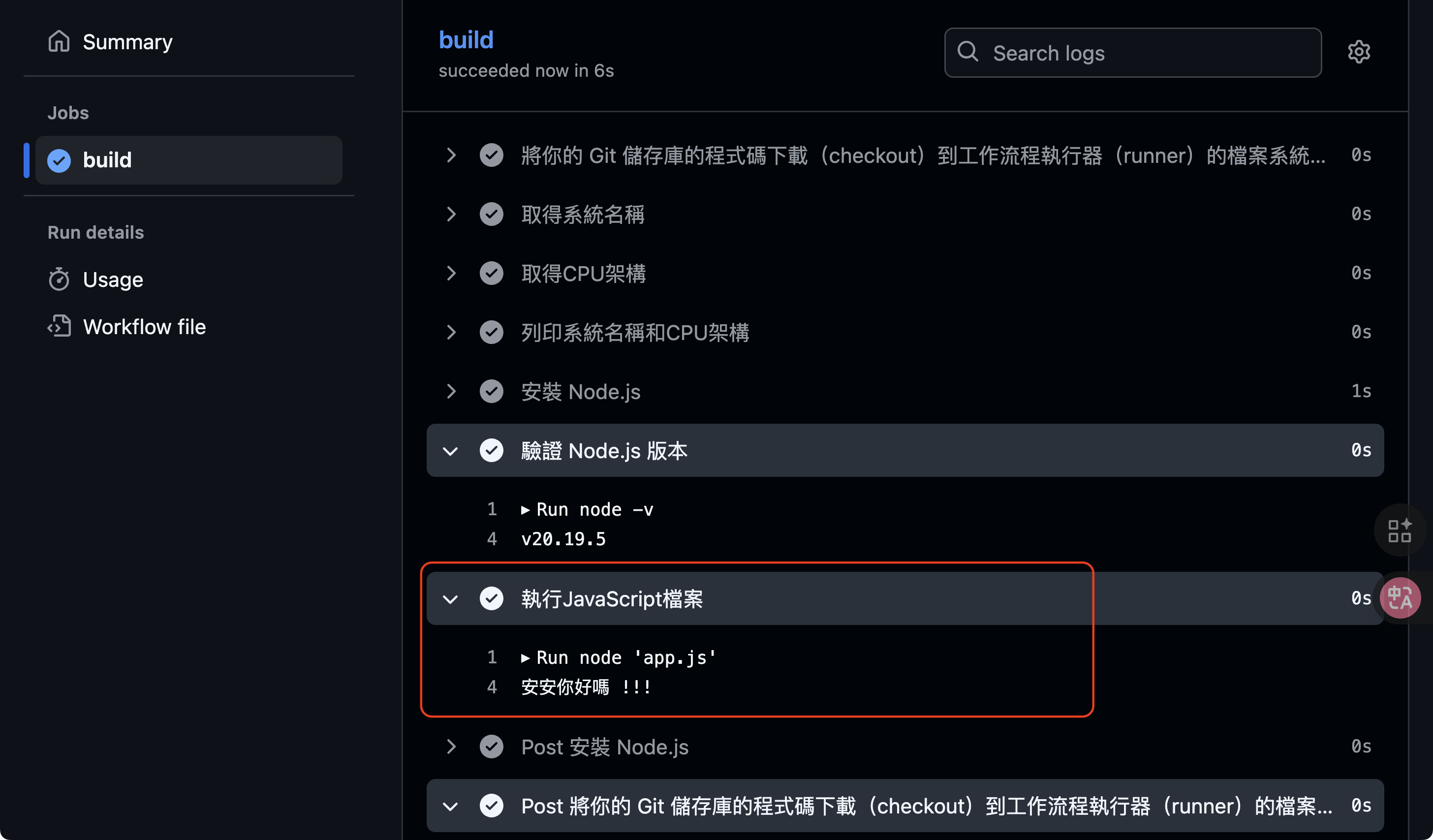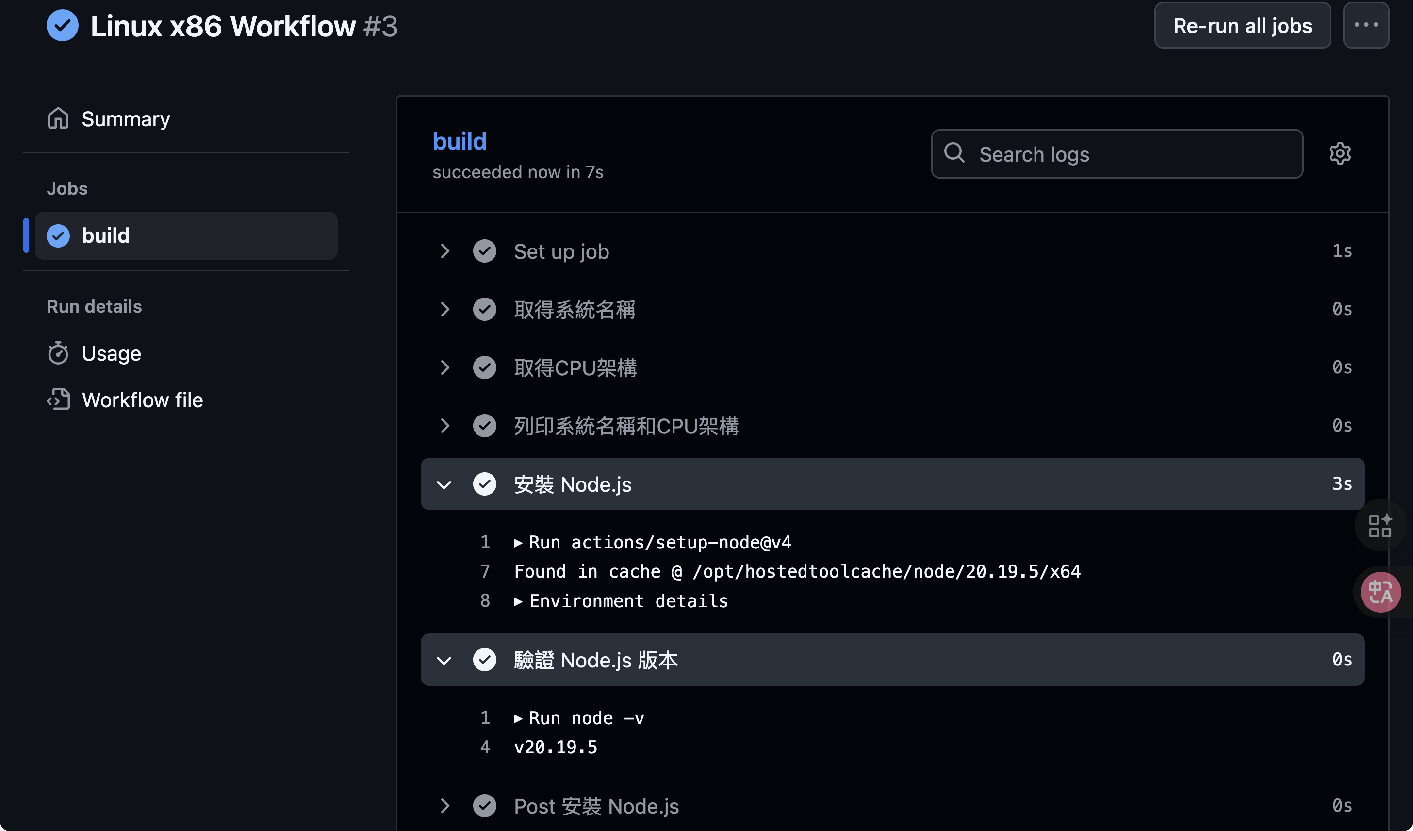 ,然後再跟之前的影片一樣,手動執行Run workflow