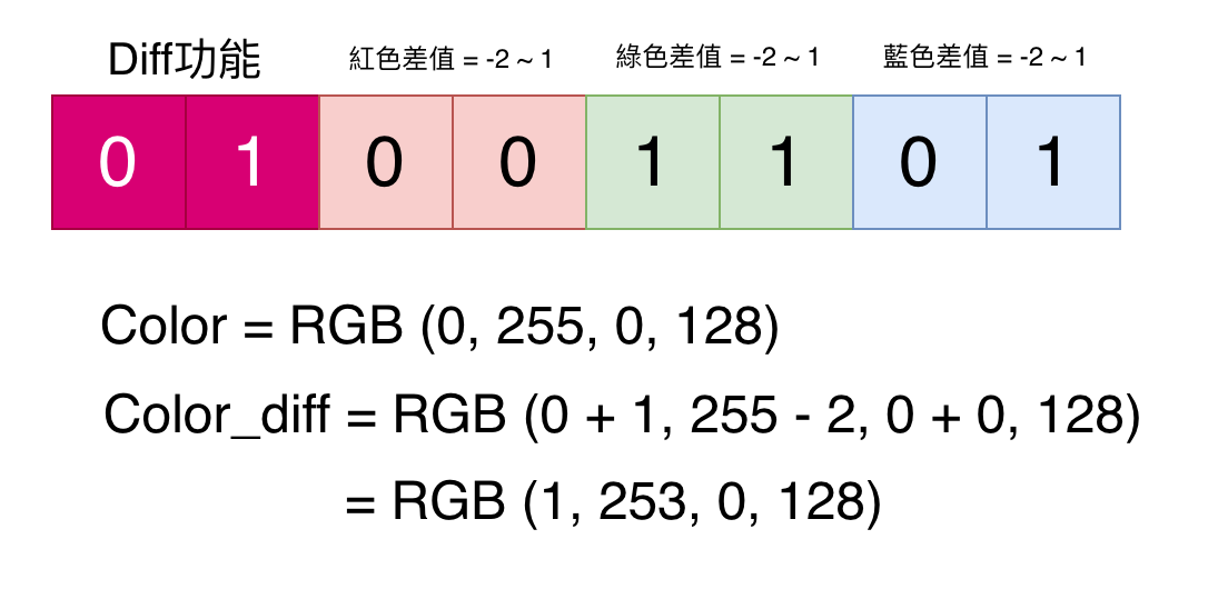 different功能,用來記錄相似顏色功能,跟上一個顏色的差距,差距範圍在-2 ~ 1之間… - 因為一般的顏色都是