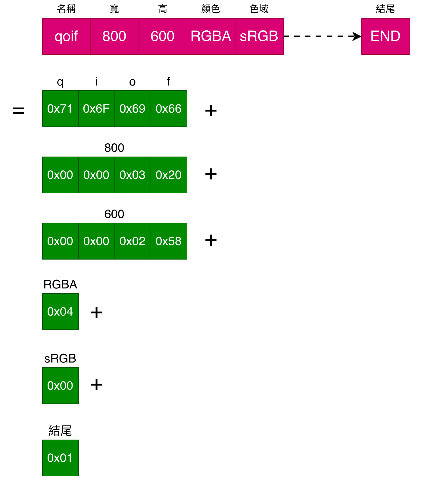 - 我們先來看看QOI的檔案標頭長什麼樣子?這裡用C說明,所以可以知道