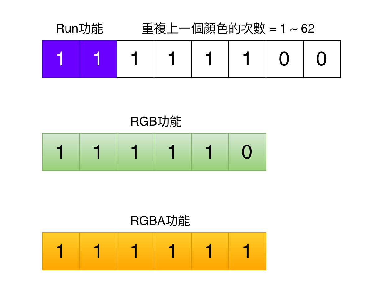 顏色頻道 (3 = RGB) / (4 = RGBA),也就是說QOI都是彩色圖片。 |