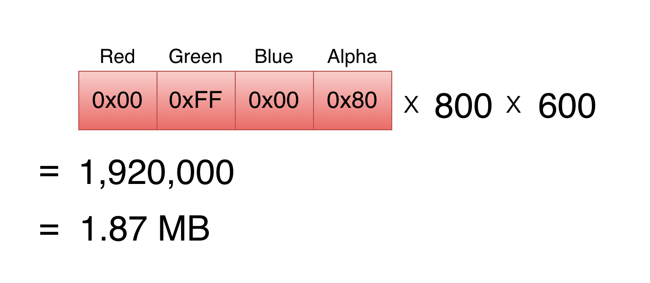 800 x 600 x 4 = 1,920,000 = 1.87 MB